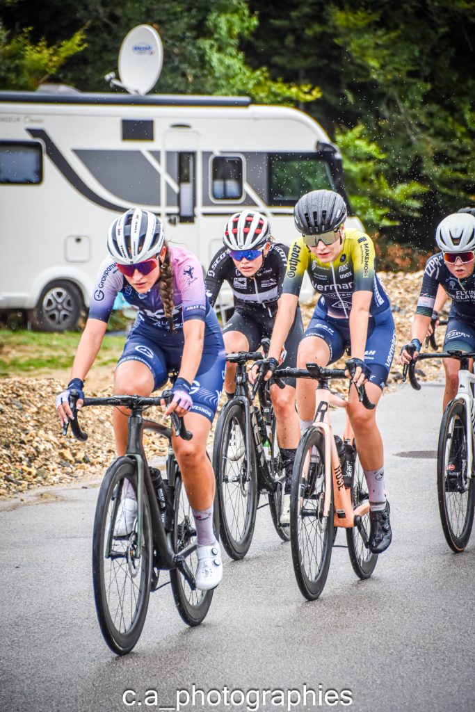 Am 30.08.2025 fand im Rahmen der 4 JOURS CIC De PLOUAY 2025 in der Bretagne in Frankreich mit dem Grand Prix Women Juniors Ceratizit ein UCI 1.1-Rennen statt. Unser Verein war durch Paula Jelinek vertreten, die mit Ihrem Vermarc-Cycling-Team zum Rennen über 94,5 km eingeladen war. Das im Regen stattfindende Rennen war von Beginn an von einer hohen Geschwindigkeit gekennzeichnet, wodurch sich schon ab der ersten Runde das Feld der Fahrerinnen stetig verkleinerte und in mehrere Gruppen zerfiel. Paula konnte aufgrund des hohen Tempos im letzten Renndrittel nicht mehr dem Hauptfeld, von dem sich eine fünfköpfige Spitzengruppe abgesetzt hatte, folgen und fuhr anschließend mit weiteren Fahrerinnen ins Ziel.