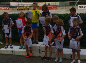 adclub Jena wieder sehr stark besetzt, denn mit Klara Hesse und Maximilian Hohenstein waren die Trikotträger als Gesamtführende am Start. Sowohl über 250 m aus dem Stand als auch beim Ausscheidungsfahren konnte Maximilian einen Sieg einfahren und somit souverän sein gelbes Trikot verteidigen. Über 250 m aus dem Stand war Klara sogar noch schneller, was bei den Mädchen locker für den Sieg reichte. Im Ausscheidungsfahren gab es Rang zwei, was dasselbe Ergebnis für die Tageswertung bedeutete. Dennoch konnte Klara bei der Siegerehrung wieder das rote Führungstrikot überziehen. An dieser Stelle noch einmal ein Dank an den SSV Gera, der Max, der direkt vor dem Start einen Reifenschaden hatte, schnell ein passendes Hinterrad auslieh und ihm somit die Teilnahme am entscheidenden Wettbewerb ermöglichte.