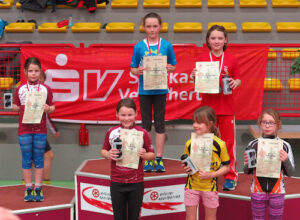 Bei den Mädchen der jüngsten Altersgruppe gelang Hannah Hohenstein für den 1. Radclub Jena ein toller Sieg. Mit einem Sieg im Schluss-Dreisprung und zweiten Plätzen im Kraftkreis und im 60-m Sprint konnte sie ihre Konkurrentinnen distanzieren. Weitere Plätze für den 1. Radclub Jena: