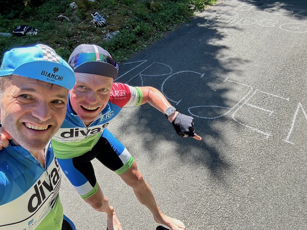 Unser Vorsitzender Sirko und Vereinsmitglied Alex verbanden das Sportliche mit dem Spannenden und radelten bei brütender Hitze zum Schlussanstieg der 13. Etappe der Tour de France.