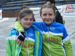 um etwas Gefühl für die ungewohnte Geometrie und die größere Übersetzung zu gewinnen. Auf der Kurzstrecke über 100 m fliegend lief es daher bei Miriam Zeise noch nicht ganz rund. Einen besseren und druckvollen Rhythmus erwischte hingegen Tanja Spath, die mit 8,37 s einen tollen 2. Platz belegte. Im abschließenden Punktefahren über 12 Runden hieß es dann, Sprint- mit Ausdauerqualitäten zu verbinden. Wissend, dass nach hinten hinaus die Luft dünner werden wird, hat sich Tanja gleich bei der ersten Sprintwertung voll ins Zeug gelegt und die Wertung mit großem Abstand für sich entschieden. Offenbar war der Abstand für das Kampfgericht zu groß, denn diese 5 Punkte wurden ihr erst nach einem Protest nach der Siegerehrung zugestanden. Dann kam das erwartet zähe Ende, bei dem sich Tanja aber nicht mehr überrunden ließ und somit 5 Punkte ins Ziel rettete und den zweiten Rang einfuhr. In der Omniumswertung bedeutete dies den Sieg und die Übernahme des Roten Trikots des besten Mädchens der U13! Miriam konnte sich im gesamten Punktefahren gut im Hauptfeld halten und beendete das Rennen als 5.