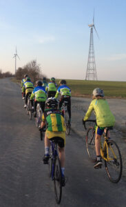1-2x pro Woche. Das Erlernen des sicheren Umgangs mit dem Rennrad und das Fahren in der Gruppe stehen im Vordergrund.