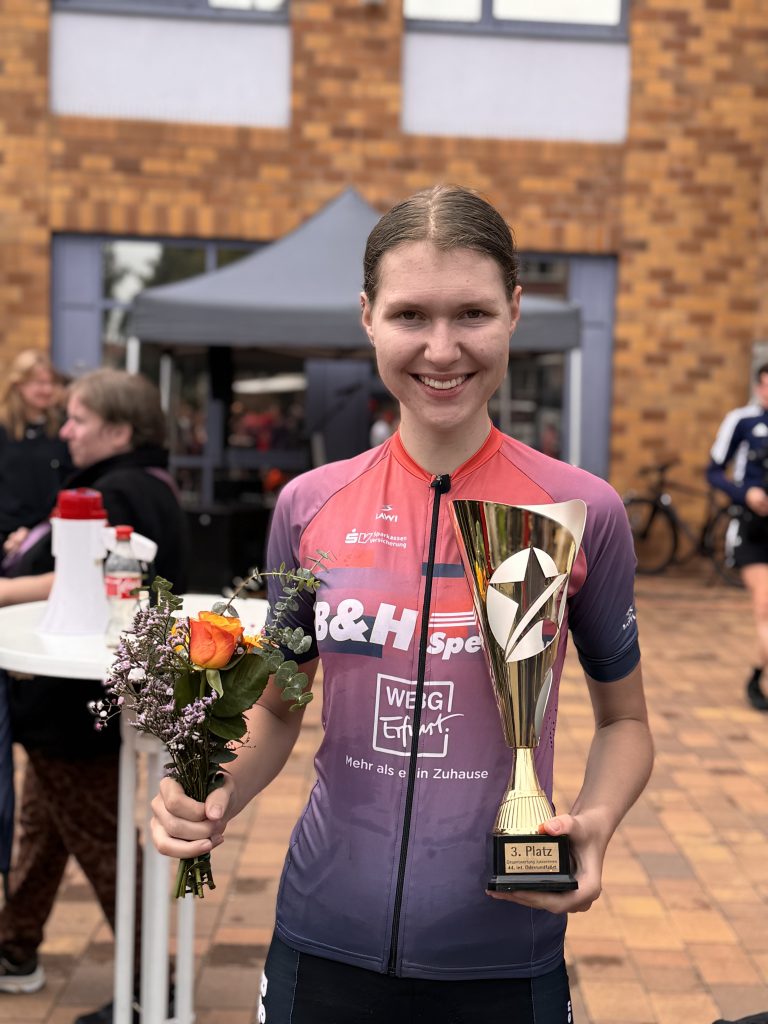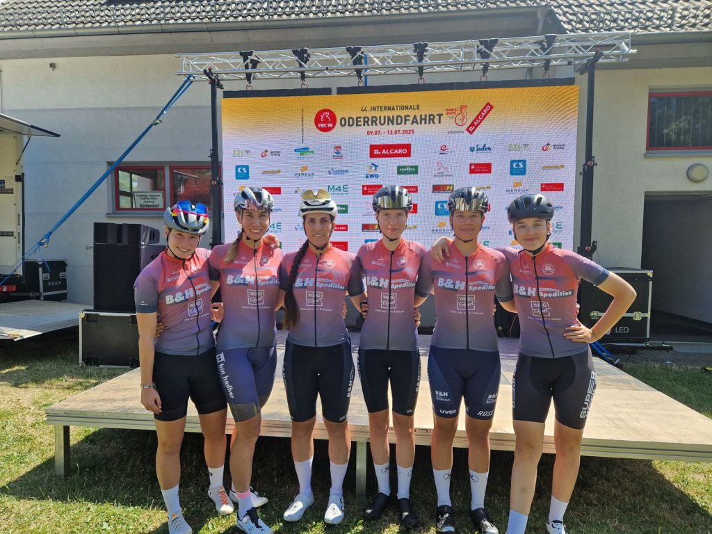 Vom 09.07. – 13.07.2025 fand die 44. Oderrundfahrt statt. Unser Verein war in diesem Jahr nur durch Paula Jelinek vertreten, die mit dem Airwerks Racing Team in einem gemischten Frauen- und U19w-Team an den Start ging. Neben dem Prolog am 1. Tag wurden bei wechselhaftem Wetter bis Sonntag vier Straßenrennen in hügeligem Terrain mit teilweise schweren Anstiegen sowie Kopfsteinpflasterpassagen ausgefahren, so dass am Ende insgesamt 340 Kilometer auf dem Tacho standen. Nach gutem Start hatte Paula auf den Etappen 2 und 3 schwächere Rennen, bei denen sie mit Hilfe ihrer Mannschaftskameradinnen das Ziel mit erträglichem Rückstand erreichen konnte. Durch eine gute vierte Etappe, in der sie eine kämpferische Leistung zeigte, konnte Sie sich in der Gesamtwertung der U19w noch auf Platz 3 vorschieben.